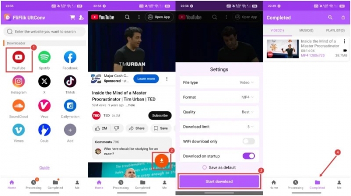 Bước 4: Tiếp theo, nhấn Bắt đầu Tải xuống. Video hoặc âm thanh sẽ được lưu trực tiếp vào thiết bị của bạn, sẵn sàng để xem hoặc nghe ngoại tuyến bất cứ lúc nào.