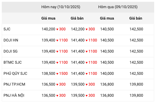 Giá vàng hôm nay 10/10