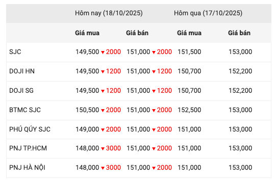 Phiên giao dịch ngày 18/10 đánh dấu một cú đảo chiều khiến giới đầu tư trong nước ngỡ ngàng. Sau chuỗi ngày lập đỉnh liên tiếp, giá vàng bất ngờ giảm mạnh, cuốn theo tâm lý lo lắng của những người nắm giữ kim loại quý.