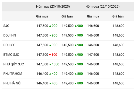 Giá vàng trong nước 23/10