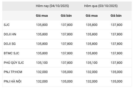 Tính đến 18h05 ngày 4/10, giá vàng miếng SJC được các doanh nghiệp lớn như DOJI, Bảo Tín Minh Châu niêm yết ở ngưỡng cao. Bạn đọc tham khảo thêm thông tin chi tiết dưới bài viết này.