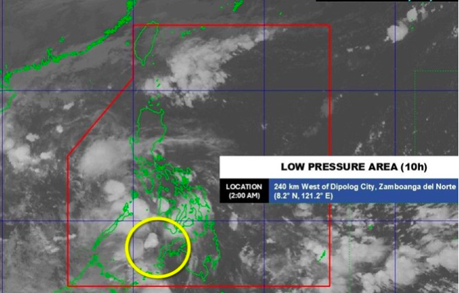 Theo thông tin từ Cục Quản lý Thiên văn, Địa vật lý và Khí quyển Philippines (PAGASA), lúc 3 giờ sáng ngày 27.10, tâm áp thấp nằm ở khoảng 8,3 độ vĩ Bắc và 121,0 độ kinh Đông, cách thành phố Dipolog (tỉnh Zamboanga del Norte) khoảng 260 km về phía tây. Khả năng hình thành áp thấp nhiệt đới trong 24 giờ tới được đánh giá là “thấp”, song cơ quan này dự báo vùng áp thấp sẽ di chuyển theo hướng tây và có thể tiến vào Biển Đông trong ngày 28 – 29/10.