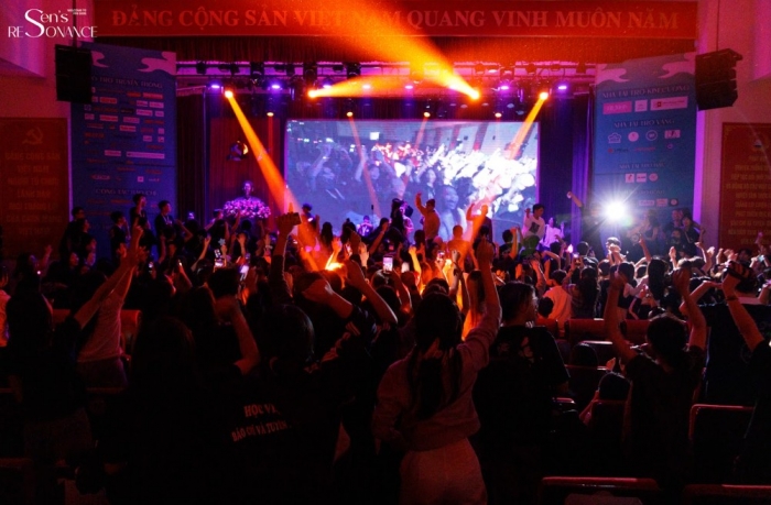 Đêm nhạc hội tiếp tục dưới sự dẫn dắt của bộ đôi DJ HuyDX và MC Millic. Những giai điệu điện tử kết hợp cùng hiệu ứng sân khấu mãn nhãn đã biến đêm đại nhạc hội của FPS 2025 thành một “bữa tiệc” âm thanh, ánh sáng thực thụ. Đây cũng là khoảnh khắc được mong chờ nhất, khi Ban Tổ chức chương trình được hòa mình vào sự cuồng nhiệt của hàng trăm khán giả sau thời gian dài dày công chuẩn bị. Từng nhịp điệu vang lên như thổi bùng năng lượng tuổi trẻ, khép lại đêm nhạc “Sen’s Resonance” bằng những cảm xúc trọn vẹn và dư âm khó quên.