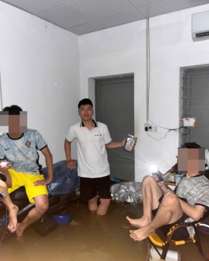 Dũng và nhóm người bạn mất khoảng 20 phút dọn dẹp, mọi thứ mới ổn hơn. Lúc này, nước đã ngập đến đầu gối nhưng đã có dấu hiệu rút dần nên mọi người yên tâm đi ngủ. Cho đến nửa đêm, Dũng choàng tỉnh giấc và hoảng hốt khi nước dâng cao đến gần mép giường, một số đồ đạc đã kê cao trước đó cũng bị nước bao phủ, đồ đạc nổi lềnh bềnh. Chàng sinh viên bất ngờ vì nước lên quá nhanh và phải chuyển sang chỗ khác để tránh ngập.