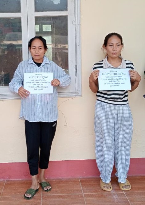 Ngày 4/10, Đồn Biên phòng cửa khẩu quốc tế Nậm Cắn chủ trì, phối hợp với Phòng Nghiệp vụ, Ban Chỉ huy BĐBP tỉnh Nghệ An và lực lượng Công an bắt giữ đối tượng Lương Thị Hưng (sinh 1988, trú tại bản Piêng Ồ, xã Nga My, tỉnh Nghệ An) và Vi Thị Phượng (sinh 1968, trú tại bản Cánh, xã Mường Xén, tỉnh Nghệ An) về hành vi mua bán người.