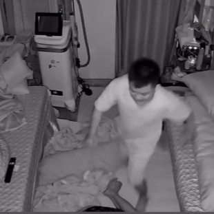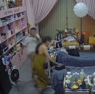 Đỉnh điểm là vào tối ngày 10/10, chị T. đi dự sinh nhật con của chị gái mà không xin phép Khánh. Đoạn video từ camera an ninh cho thấy một người đàn ông mặc quần đùi, áo sơ mi cộc tay đã xông vào phòng, liên tiếp hành hung con trai, sau đó quay sang dùng chân tay đấm đá vào người và đầu bà T.