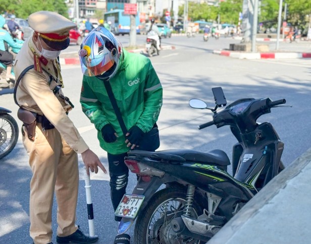 Khoảng 9h, cảnh sát phát hiện lái xe ôm công nghệ N.V.T. (25 tuổi, quê Ninh Bình) che, dán biển số xe nên đã yêu cầu dừng xe để kiểm tra.