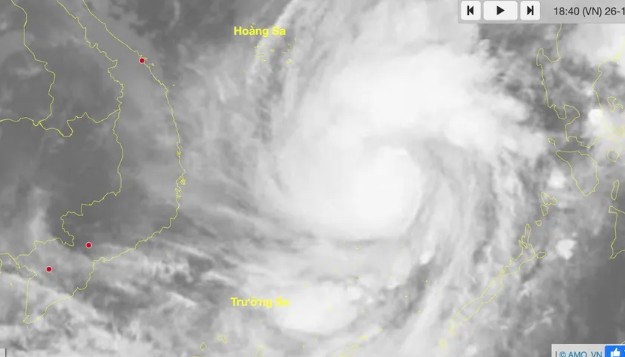 Bão số 15 hình thành trên vùng biển phía đông Philippines và tiến vào Biển Đông vào đêm 25 rạng sáng 26/11/2025. Đến sáng 26/11, tâm bão nằm ở giữa Biển Đông với sức gió mạnh cấp 10 - 11, giật cấp 13, gây ra vùng mây đối lưu rộng hàng trăm km. Cường độ bão được dự báo duy trì và có xu hướng di chuyển chậm, tạo ra trường gió mạnh kéo dài trên biển.