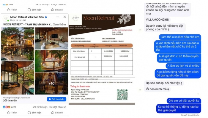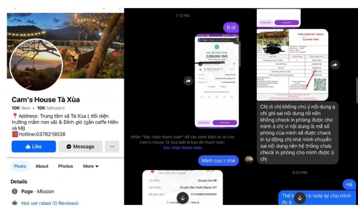 Tình trạng này không chỉ xảy ra với một vài trang nhỏ lẻ. Nhiều trường hợp khác như fanpage “CHHTX” với hơn 32.000 người theo dõi đã dụ du khách chuyển tiền đặt phòng với mức từ vài trăm nghìn đến vài triệu đồng rồi “biến mất” ngay sau đó.
