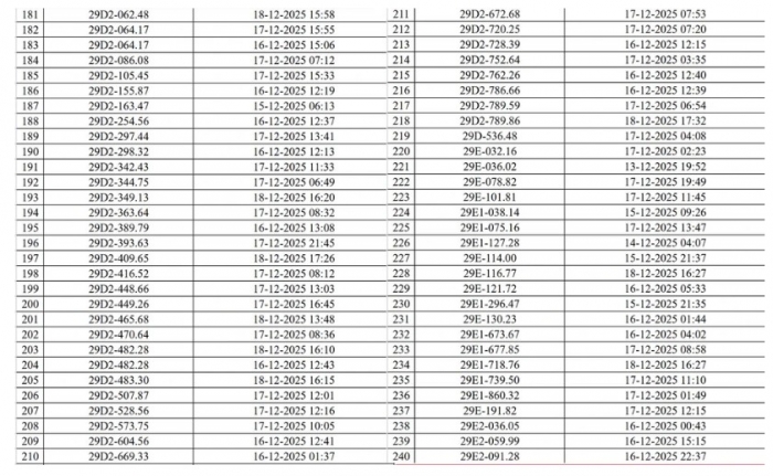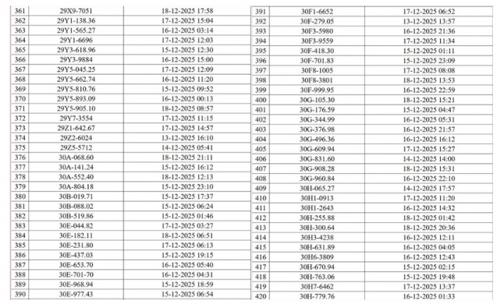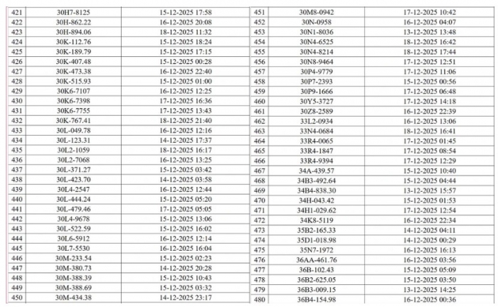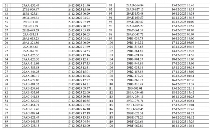 Danh sách 545 phương tiện vi phạm (đợt 1) được Phòng Cảnh sát giao thông – Công an TP Hà Nội tổng hợp và gửi cho các chủ phương tiện để thực hiện nộp phạt nguội theo quy định. Việc xử lý phạt nguội diễn ra dựa trên hình ảnh, thời gian, vị trí và lỗi vi phạm được camera AI ghi nhận chính xác, làm cơ sở pháp lý để xử lý vi phạm trên môi trường điện tử.