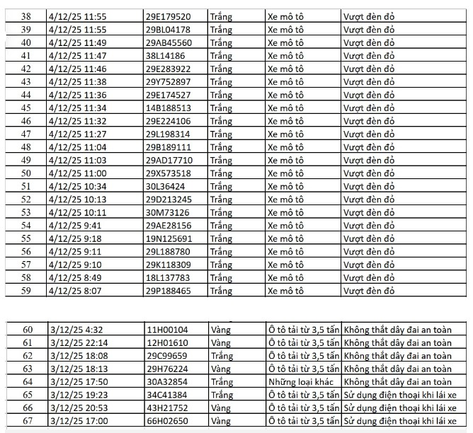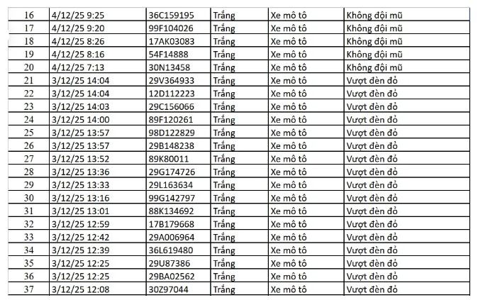 Các phương tiện vi phạm được phát hiện thông qua hệ thống camera giám sát và thiết bị kỹ thuật trên nhiều tuyến đường, trong đó có cả các tuyến tại Công an TP. Hà Nội.