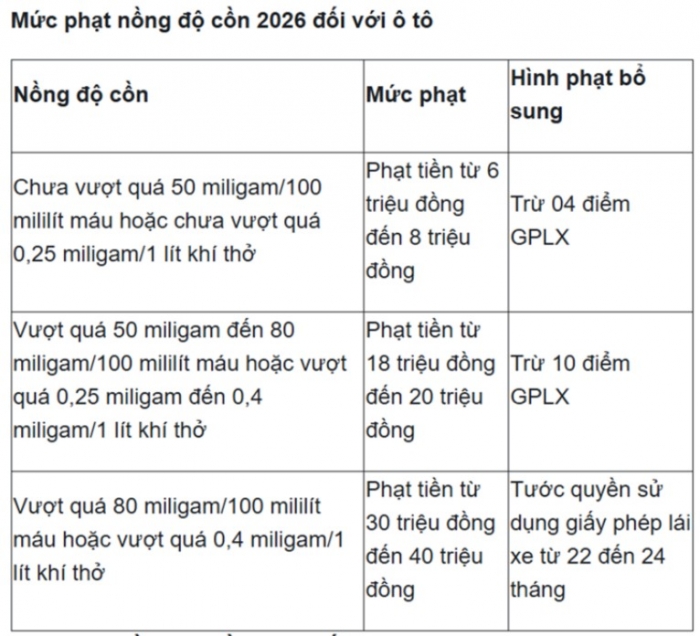 Chi tiết mức phạt vi phạm nồng độ cồn với 4 loại phương tiện từ năm 2026: Cao nhất 40 triệu đồng!