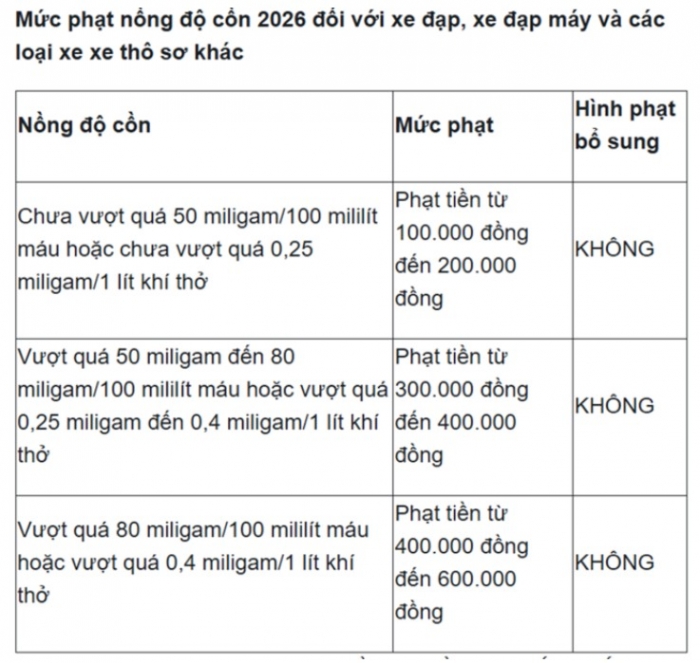Mức xử phạt vi phạm nồng độ cồn đối với người điều khiển xe đạp