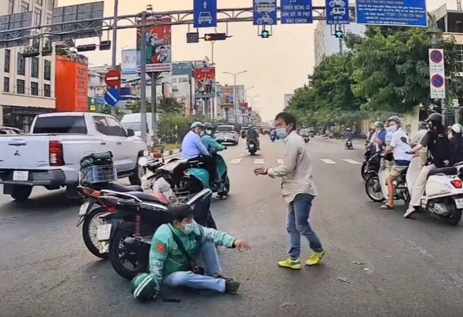 Công an vào cuộc vụ 2 người đàn ông đánh nhau giữa đường tại TP.HCM, 1 người mặc áo xe ôm công nghệ