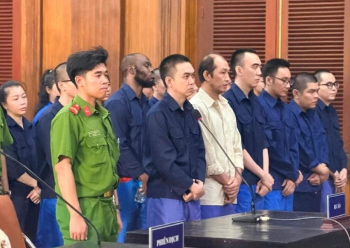 Trong vụ án này, 19 bị cáo đứng trước vành móng ngựa, trong đó Mai Vũ Minh (40 tuổi), Okoye Christian Ikechukwu (quốc tịch Nigeria) cùng 3 người khác bị truy tố tội “Rửa tiền” vì tham gia nhận và chuyển tiền từ các nhóm tội phạm nước ngoài. Nhóm còn lại gồm Phạm Văn Nhân (45 tuổi), Dương Đại Nghĩa (42 tuổi), Nguyễn Thị Kim Ngân (41 tuổi), Đỗ Viết Đại (54 tuổi) – chủ tiệm vàng Đức Long sống như vợ chồng với Ngân và 10 bị cáo khác bị truy tố tội “Vận chuyển trái phép tiền tệ qua biên giới”.