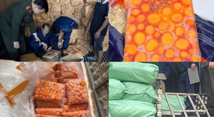 Tại thời điểm kiểm tra, lực lượng chức năng đã tạm giữ tổng cộng hơn 12,3 tấn thực phẩm đông lạnh, gồm khoảng 8,3 tấn sụn gà, 3,6 tấn trứng gà non và gần 0,5 tấn mỡ động vật. Toàn bộ số hàng hóa đều được đóng trong các bao bì in chữ nước ngoài, không có nhãn phụ tiếng Việt, không tem kiểm định và không xuất trình được hóa đơn, chứng từ chứng minh nguồn gốc hợp pháp.