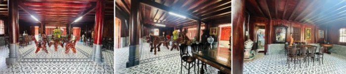 Dinh thự được thiết kế theo phong cách nhà vườn với nhiều khu nhà riêng biệt, gồm phòng khách, phòng thờ, bếp và khoảng 10 phòng ngủ, ưu tiên không gian xanh, thoáng đãng. Khuôn viên trồng nhiều cây ăn trái, bố trí hòn non bộ, hồ cá và đặt nhiều tượng Phật bằng đá, tạo cảm giác yên bình. Trong đó có bức tượng Phật Thích Ca Mâu Ni bằng đá nguyên khối do nghệ sĩ Việt Hương tặng.
