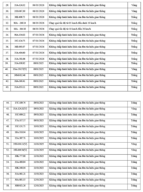 Dưới đây là danh sách các biển số xe được camera AI ghi nhận vi phạm giao thông, chủ phương tiện cần nhanh chóng nộp phạt nguội theo Nghị định 168.