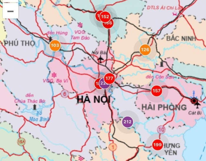 Tại Hà Nội, hai điểm đo ở Công viên Thanh Xuân và đường Nguyễn Văn Cừ cho kết quả chất lượng không khí ở ngưỡng xấu, có thể gây hại cho sức khỏe nếu tiếp xúc lâu. Đáng nói hơn, tại điểm đo cổng Parabol Đại học Bách Khoa Hà Nội, chỉ số AQI đã vượt ngưỡng rất xấu - mức cảnh báo cao nhất hiện nay.