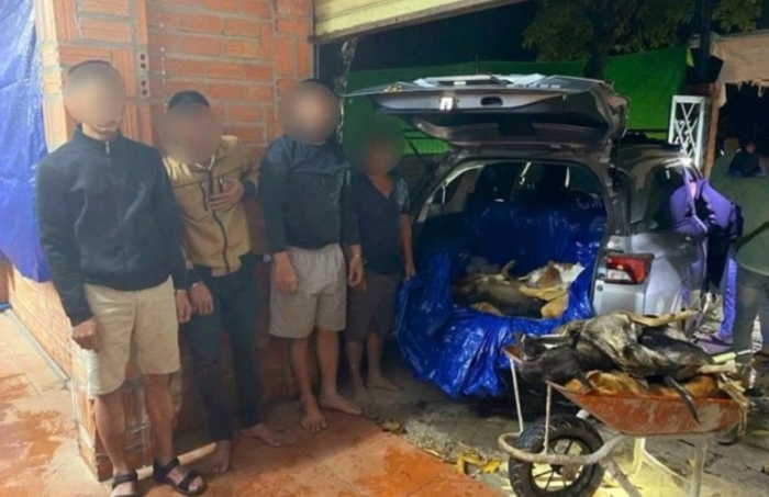 Theo thông tin từ cơ quan chức năng, khoảng 4 giờ 40 phút cùng ngày, tổ công tác bất ngờ kiểm tra tụ điểm tại xã Đức Lập (Tây Ninh), tạm giữ 5 đối tượng và thu giữ 29 con chó gồm 275 kg chó sống và 10 con chó đông lạnh, cùng 1 ô tô, 4 xe máy, súng điện, bình xịt hơi cay, mũi tên tự chế và các thiết bị phục vụ việc làm lông chó. Cùng ngày, lực lượng tiếp tục kiểm tra tụ điểm thứ hai tại phường Ninh Thạnh, tạm giữ thêm 4 đối tượng, thu giữ hơn 1,2 tấn chó (104 con), 1 xe tải, tủ đông công nghiệp 761 lít và nhiều thiết bị khò gas phục vụ việc giết mổ chó.