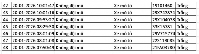 Trong vòng 24 giờ, từ 12h ngày 20/1 đến 12h ngày 21/1/2026, hệ thống camera AI trên địa bàn TP Hà Nội đã ghi nhận rất nhiều trường hợp vi phạm trật tự, an toàn giao thông. Dưới đây là danh sách chi tiết.