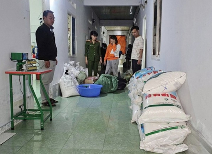 Tại hiện trường, công an thu giữ 307 gói bột ngọt và hạt nêm giả mạo nhãn hiệu Knorr, A-One, với tổng khối lượng khoảng 127kg; 20 bao phụ gia thực phẩm ghi nhãn bằng tiếng Trung Quốc, tương đương 480kg; cùng máy ép, máy hút chân không, bao bì in sẵn tên thương hiệu và nhiều gói sản phẩm đã đóng gói hoàn chỉnh chuẩn bị đưa ra thị trường tiêu thụ và 1 xe máy.