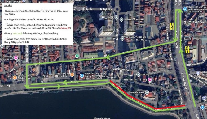 Cụ thể, trên trục đường Nguyễn Hữu Thọ, thành phố tổ chức lại lưu thông cho các phương tiện ô tô chỉ được lưu thông một chiều theo hướng từ ngõ 50 Nguyễn Hữu Thọ đi ra đường Giải Phóng nhằm hạn chế giao cắt phức tạp và ùn ứ cục bộ. Đồng thời, đường Đại Từ cũng được tổ chức lưu thông một chiều từ Giải Phóng đi đường Nguyễn Cảnh Dị để tạo trục dẫn thông suốt, giảm xung đột giữa các dòng xe.