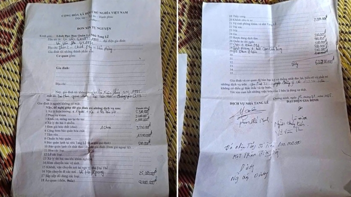 Theo lời người nhà nạn nhân, sau khi hai người thân tử vong trong vụ tai nạn giao thông và được đưa về Bệnh viện Đa khoa khu vực Quảng Yên (Quảng Ninh), gia đình trong tâm trạng hoảng loạn, đau buồn nên đã đồng ý thuê dịch vụ vận chuyển thi thể về quê an táng. Người nhà cho biết, quá trình trao đổi diễn ra nhanh, không được giải thích rõ ràng từng khoản chi phí cụ thể. Khi hoàn tất dịch vụ, gia đình được yêu cầu thanh toán tổng cộng 100 triệu đồng, trong đó có biên nhận ghi rõ “đã nhận đủ số tiền 100 triệu đồng”. Do không chuẩn bị kịp tiền mặt, gia đình phải vay mượn để thanh toán theo yêu cầu của đơn vị dịch vụ. Sau đó, khi xem lại bảng kê chi phí với nhiều khoản phát sinh, người nhà cho rằng mức giá quá cao, không tương xứng và có dấu hiệu bị thu tiền bất hợp lý nên đã phản ánh lên mạng xã hội.