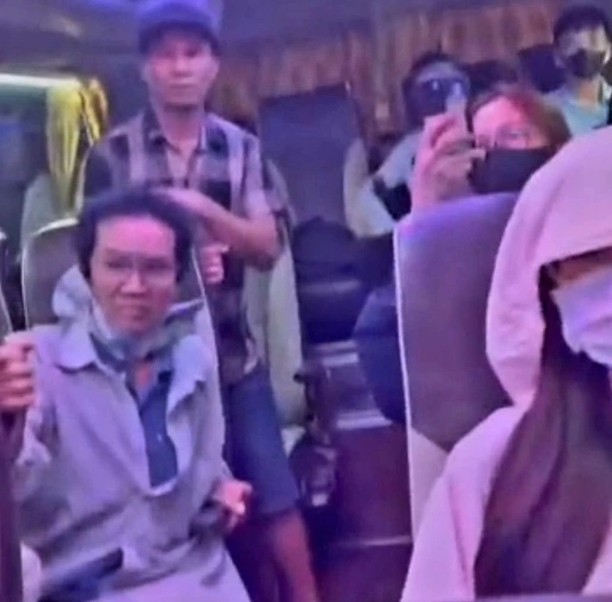 Trong đoạn clip quay từ bên trong xe, tiếng động cơ gầm rú hòa lẫn cùng tiếng la hét, nỗi sợ hãi của hành khách vang lên dữ dội. Một phụ nữ thậm chí quỳ xuống phía dưới sàn xe, kêu cứu và van xin tài xế dừng lại, nhiều người khác chồm dậy bám chặt vào thành ghế, tuyệt vọng kêu “cho xuống đi” nhưng tài xế vẫn tiếp tục cuộc rượt đuổi.