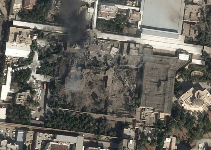 Theo kênh Channel 12 (Israel), nhiều công trình bên trong khuôn viên đã bị hư hại nghiêm trọng, mái nhà sập xuống, các mảng tường biến mất, để lộ khoảng trống lớn giữa khu dân cư vốn được bảo vệ nghiêm ngặt. Một số phân tích ảnh chụp từ vệ tinh thương mại cho thấy các điểm nổ tập trung tại khu vực trung tâm của tổ hợp, nơi được coi là khu vực làm việc chính.