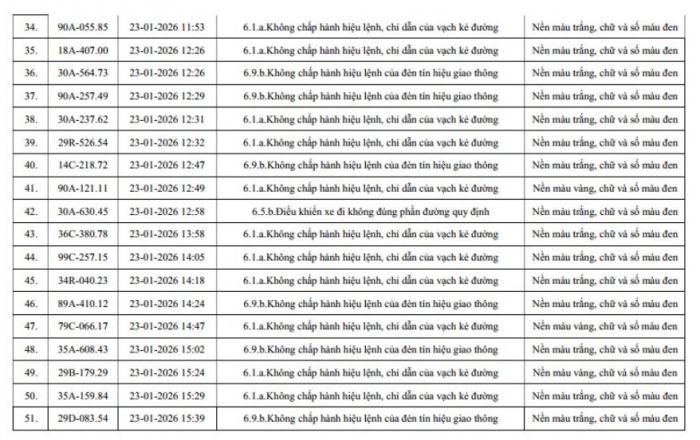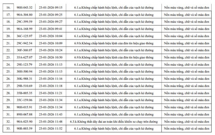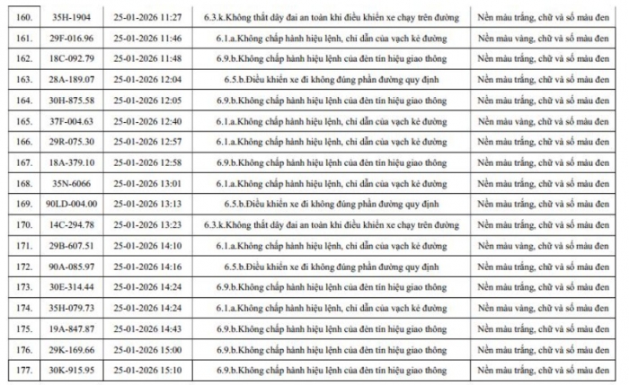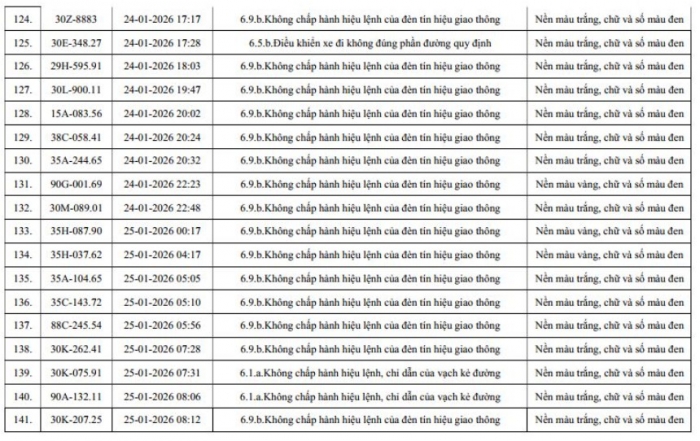 Phòng Cảnh sát giao thông Công an tỉnh Ninh Bình cho biết, từ ngày 13/1 đến 27/1/2026, hệ thống camera giám sát giao thông ứng dụng trí tuệ nhân tạo (AI) trên địa bàn tỉnh đã ghi nhận nhiều trường hợp vi phạm trật tự an toàn giao thông, chủ yếu là các lỗi chạy quá tốc độ, vượt đèn đỏ, đi sai phần đường, làn đường.