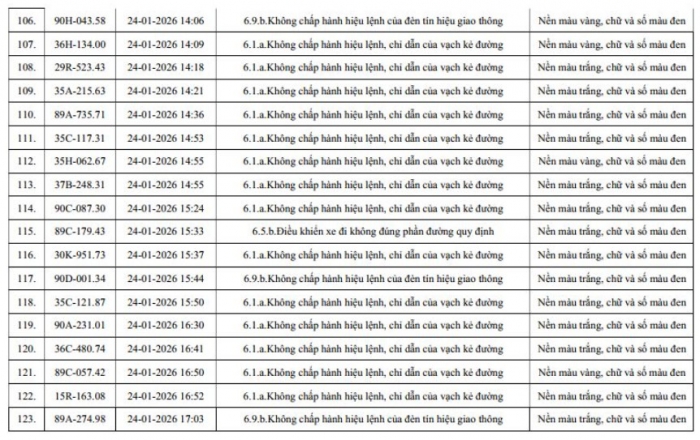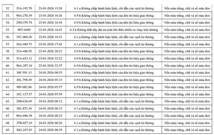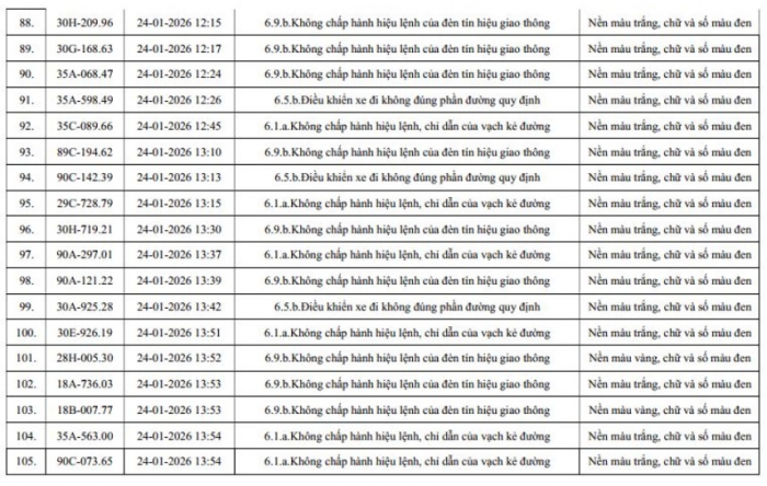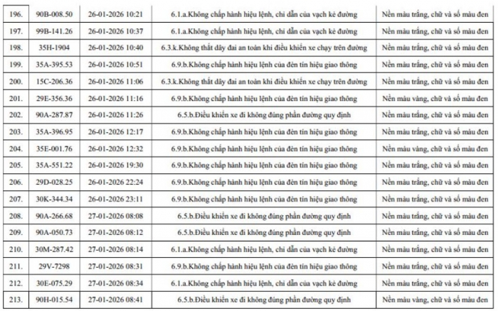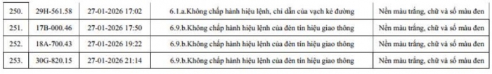 Qua trích xuất dữ liệu, cơ quan chức năng xác định được 253 phương tiện có gắn biển số sau vi phạm các lỗi nêu trên. Các trường hợp này không bị dừng xe xử lý trực tiếp tại thời điểm vi phạm mà được lập hồ sơ xử phạt nguội, gửi thông báo đến chủ phương tiện. Đáng chú ý, hầu hết các chủ xe đã nhanh chóng đến làm việc và chấp hành nộp phạt theo quy định.
