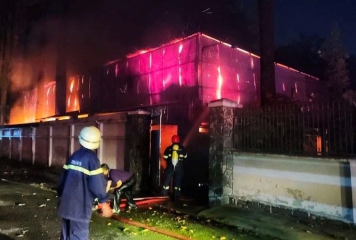 Theo thông tin ban đầu, khoảng 19h30 tối 18/2, người dân phát hiện lửa bùng lên dữ dội từ một nhà kho nằm trong khu dân cư. Chỉ trong ít phút, ngọn lửa nhanh chóng lan rộng, bao trùm toàn bộ khu vực nhà kho rộng hơn 100 m², kèm theo cột khói đen ngùn ngụt có thể nhìn thấy từ xa.