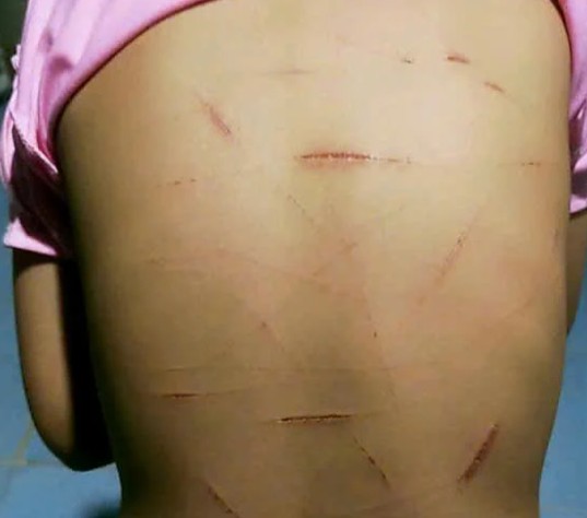 Trước đó, vào ngày 21/1, khi đến trường, giáo viên Trường Tiểu học 1 Khánh Bình Tây Bắc phát hiện trên tay, chân và nhiều vùng da của em N. có hơn 200 vết trầy xước, vết cắt, một số chưa lành, liền báo chính quyền địa phương. Qua kiểm tra ban đầu, các vết thương được xác định do vật nhọn gây ra.