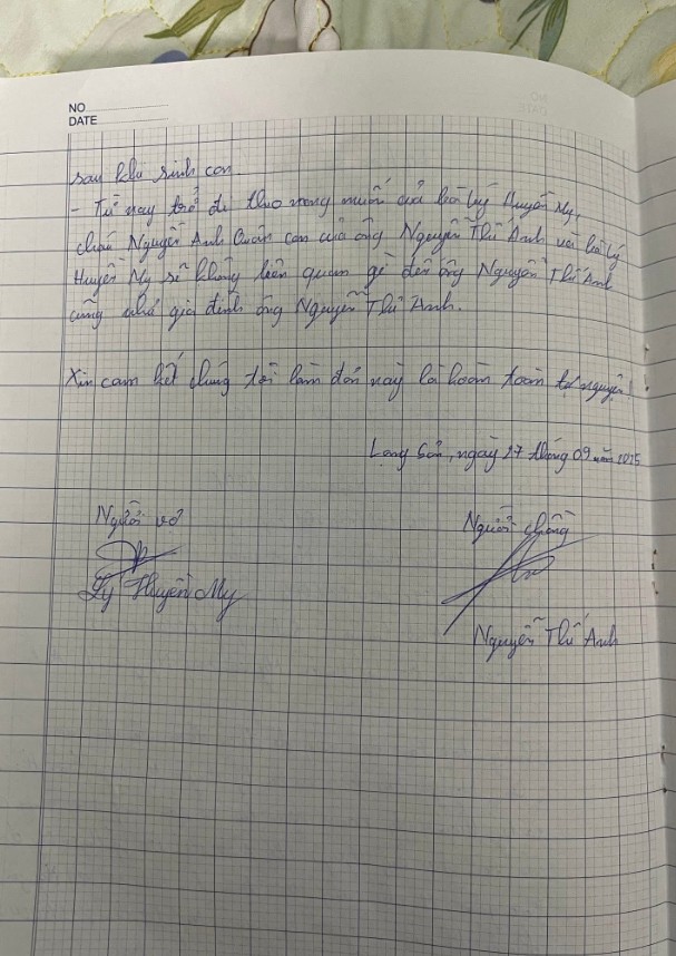Một số nguồn tin còn cho biết, trước khi mâu thuẫn xảy ra, giữa hai bên từng có một bản cam kết, được cho là lập vào tháng 9/2025, liên quan đến cách ứng xử và sinh hoạt trong gia đình. Tuy nhiên, nội dung cụ thể của bản cam kết này hiện chưa được công bố rõ ràng và cũng chưa có xác minh chính thức.