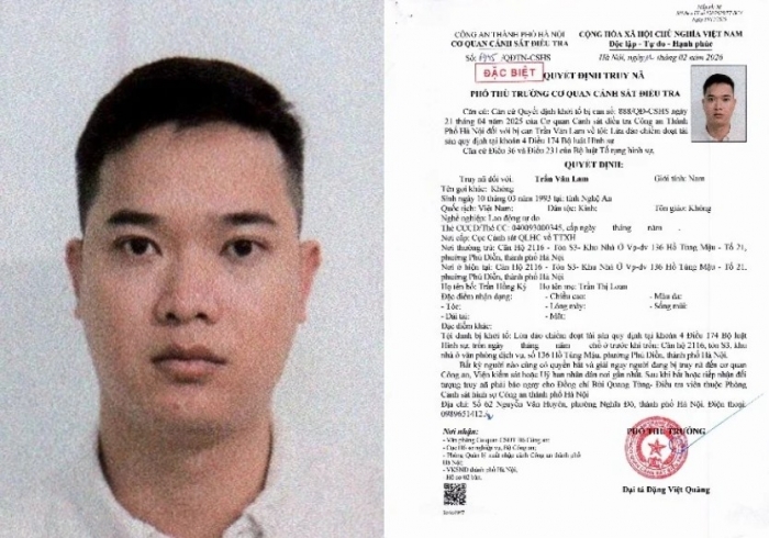Tài liệu điều tra cho thấy, ngày 21/1/2025, Cơ quan Cảnh sát điều tra Công an TP Hà Nội đã ra quyết định khởi tố bị can đối với Trần Văn Lam về tội lừa đảo chiếm đoạt tài sản. Tuy nhiên, trong quá trình điều tra, đối tượng đã bỏ trốn ra nước ngoài nhằm trốn tránh trách nhiệm trước pháp luật. Đến ngày 11/2/2026, cơ quan điều tra đã ra quyết định truy nã đối với Lam để phục vụ công tác điều tra, xử lý vụ án.