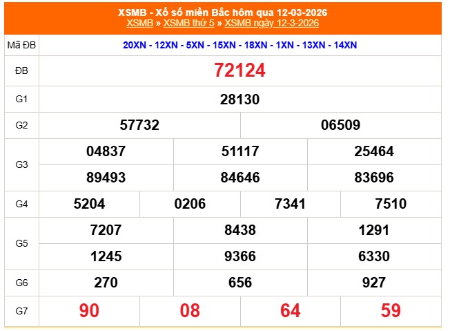 Kết quả xổ số miền Bắc ngày 12/3/2026