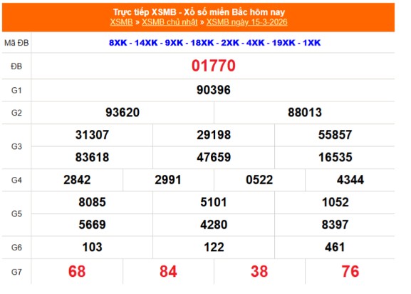 Kết quả xổ số miền Bắc ngày 15/3/2026