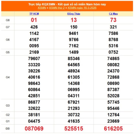 XSMB thứ Hai 16/3: Kết quả xổ số miền Bắc hôm nay ngày 16/3/2026