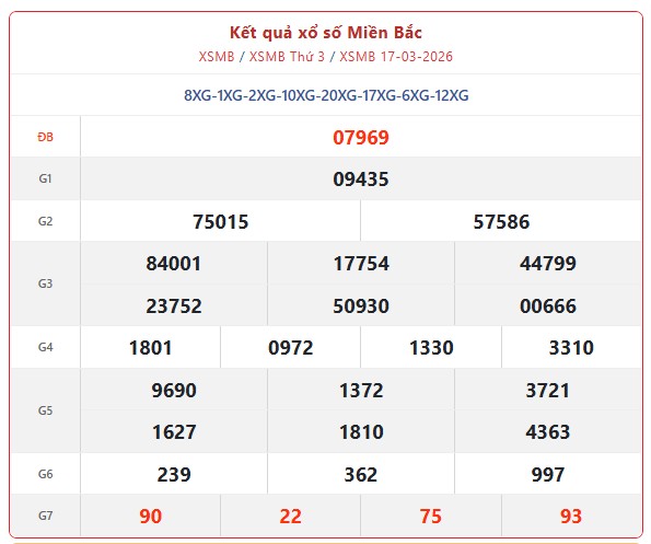 Kết quả xổ số miền Bắc (XSMB) hôm nay ngày 17/3/2026 được quay thưởng vào lúc 18h10 – 18h15 tại trường quay theo lịch mở thưởng của công ty xổ số kiến thiết, với sự giám sát chặt chẽ nhằm đảm bảo tính minh bạch và công bằng.