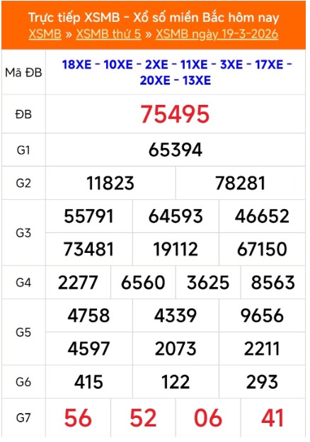 Kết quả xổ số miền Bắc ngày 19/3/2026