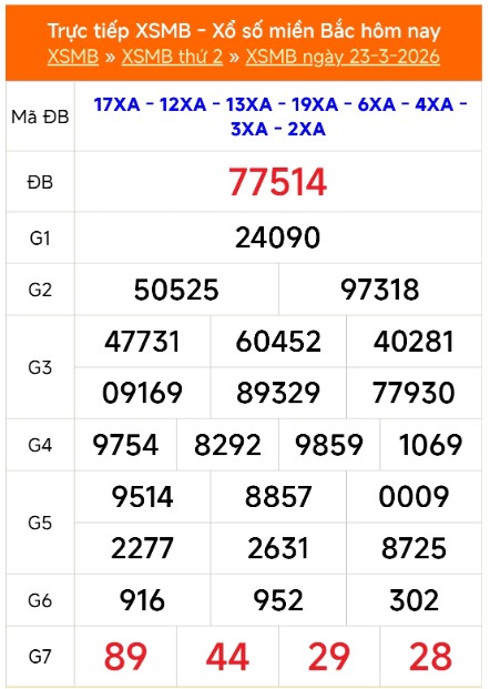 Kết quả xổ số miền Bắc ngày 23/3/2026