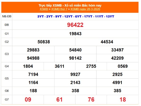 Kết quả xổ số miền Bắc ngày 28/3/2026