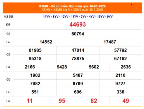 Kết quả xổ số miền Bắc ngày 26/3/2026