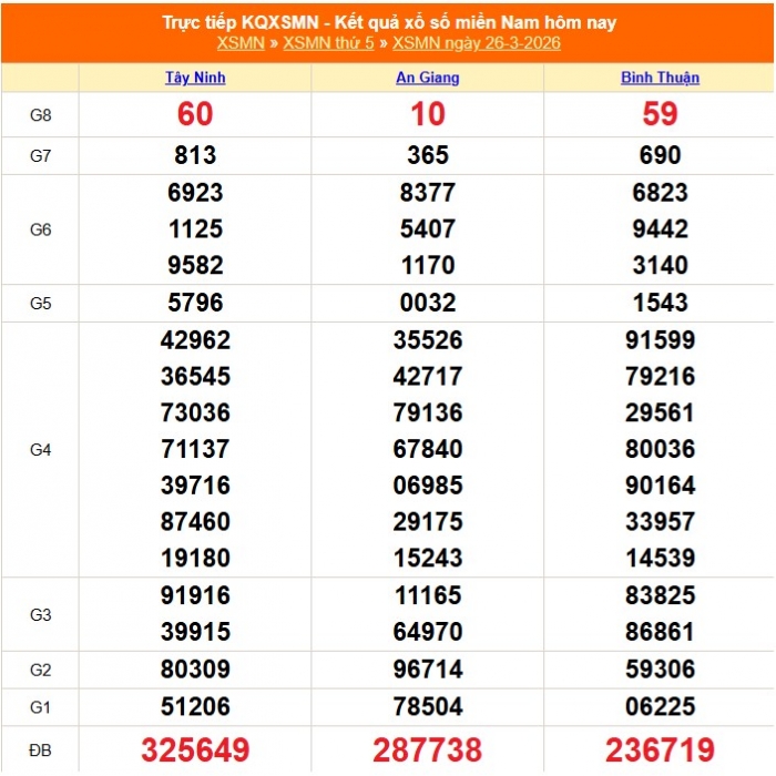Kết quả xổ số miền Nam ngày 26/3/2026