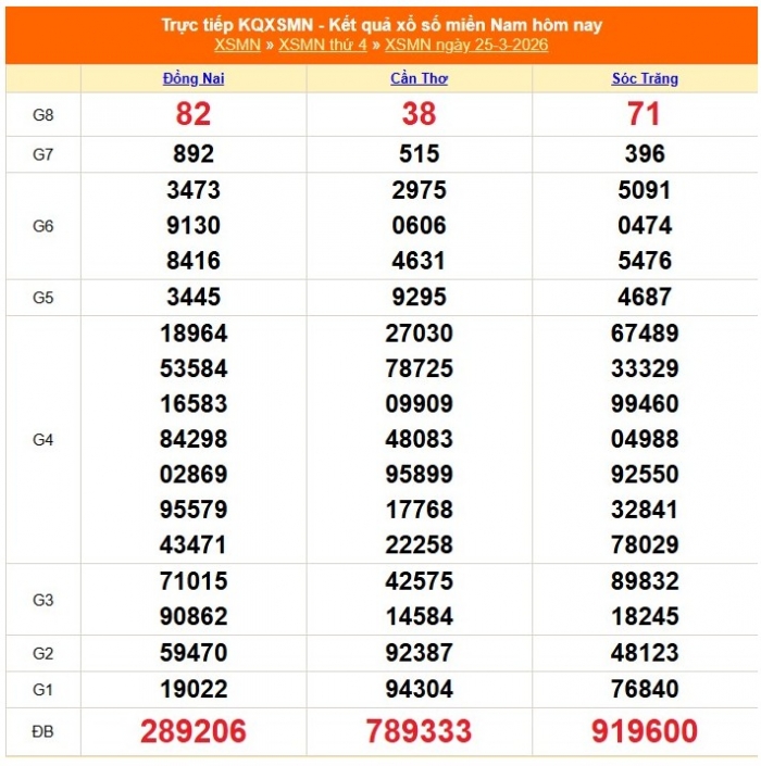 Kết quả xổ số miền Nam ngày 25/3/2026