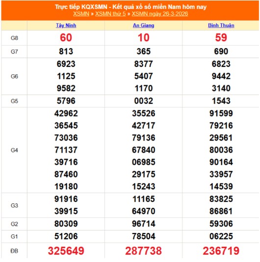 Kết quả xổ số miền Nam ngày 26/3/2026