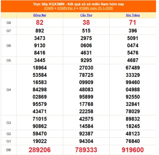 Kết quả xổ số miền Nam ngày 25/3/2026