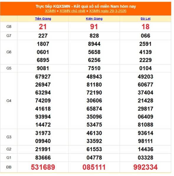 Kết quả xổ số miền Nam ngày 29/3/2026