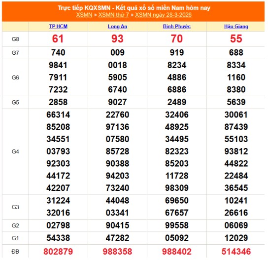 Kết quả xổ số miền Nam ngày 28/3/2026